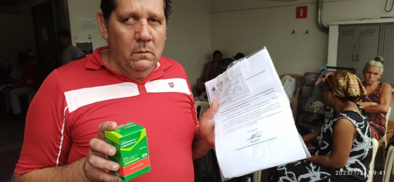 Na recepção do Centro POP Bela Vista, Odair de Almeida segura sua senha e torce para conseguir naquele dia a acolhida. Ele mostra receitas, o pedido da Defensoria Pública e a caixa vazia do remédio controlado ao tratamento que realiza há 5 anos para a infecção crônica por Hepatite C.