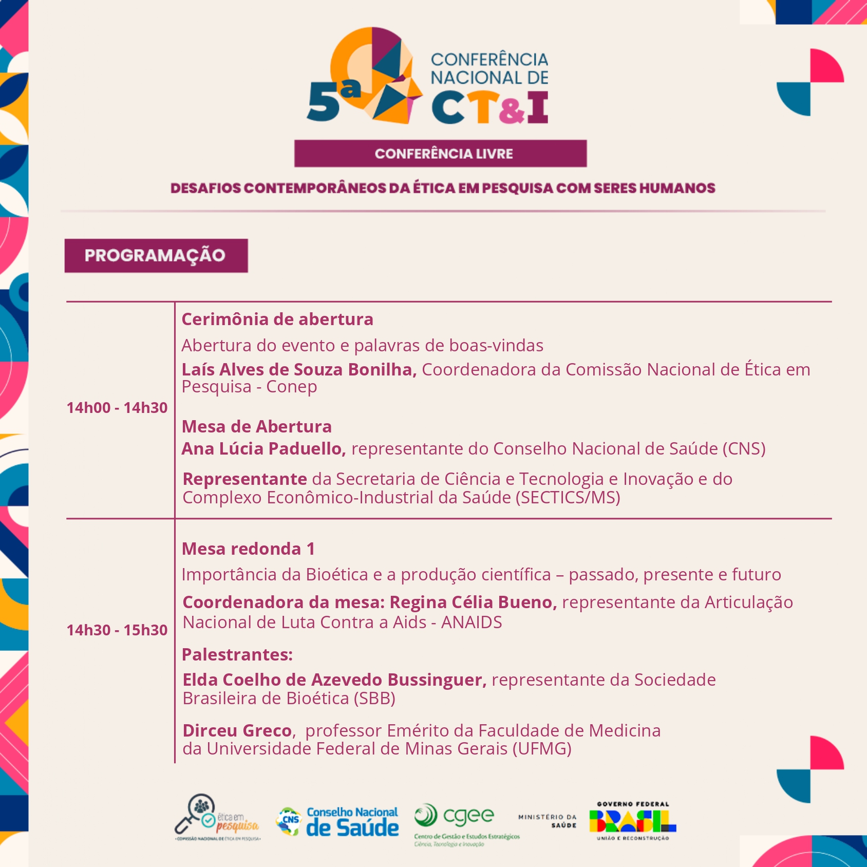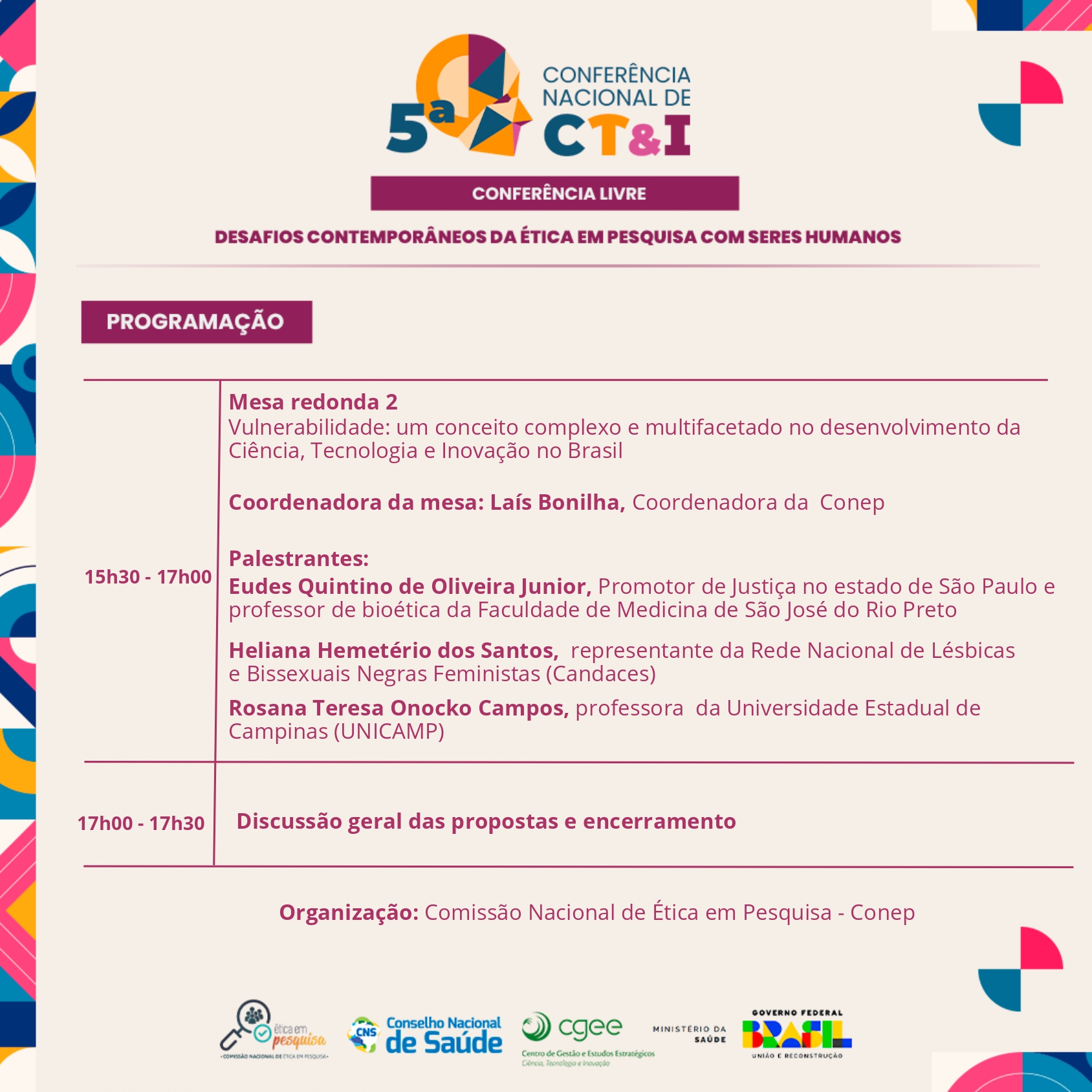 Hoje, 12 de abril, das 14h às 17h, acontece de forma virtual a Conferência Livre da Conep, cujo tema é Desafios contemporâneos da ética em pesquisa com seres humanos.