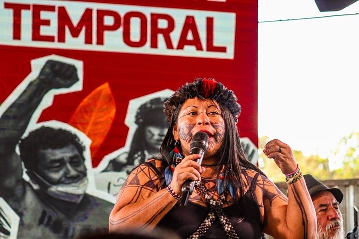 “Em 1988, o povo Tapayuna não estava no território deles. Hoje tramita no Mato Grosso uma ação possessória para demarcar o território Tapayuna. Se a tese do marco temporal for aprovada, o povo Tapayuna sequer vai poder estar em seu território, um território que foi retirado pelo Estado na ditadura militar”, completou.
