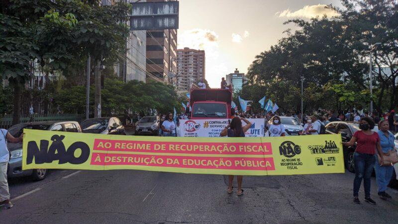 A coordenadora-geral do Sind-UTE/MG, professora Denise Romano, destacou a todos e todas que a categoria também se mobiliza contra o Regime de Recuperação Fiscal do governo Zema, que foi encaminhado à Assembleia Legislativa por meio do Projeto de Lei 1.209/2019. “O Regime congela salários e carreiras, proíbe realização de concursos e reajustes salariais por até nove anos, amplia as privatizações de empresas públicas. Precariza os serviços públicos.”