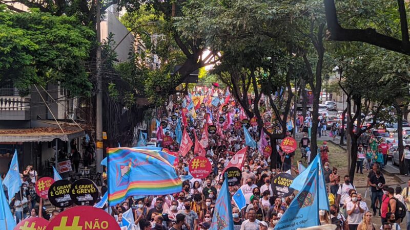 Após a Assembleia Estadual, a categoria segue rumo à Praça Sete, centro de Belo Horizonte para manifestar em defesa do Piso, contra o Regime de Recuperação Fiscal e unificar as lutas no dia Mobilização Nacional da Educação.