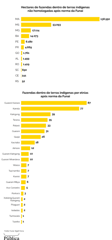 Ao todo, 415 fazendas tiveram trechos certificados dentro de TIs não homologadas. Entre eles, há casos de verdadeiros latifúndios, como a fazenda Boa Esperança II — a terceira maior propriedade beneficiada pela medida.