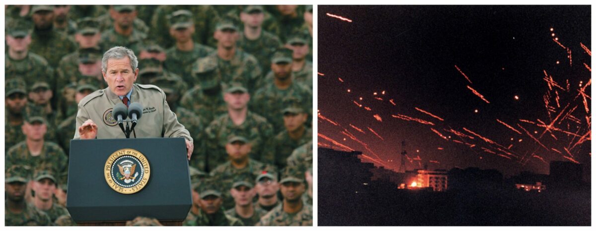 Foram 42 dias de ataques aéreos contínuos, seguidos por uma invasão terrestre rápida e contundente, com cerca de 4 mil baixas americanas e cerca de 650 mil mortos iraquianos.